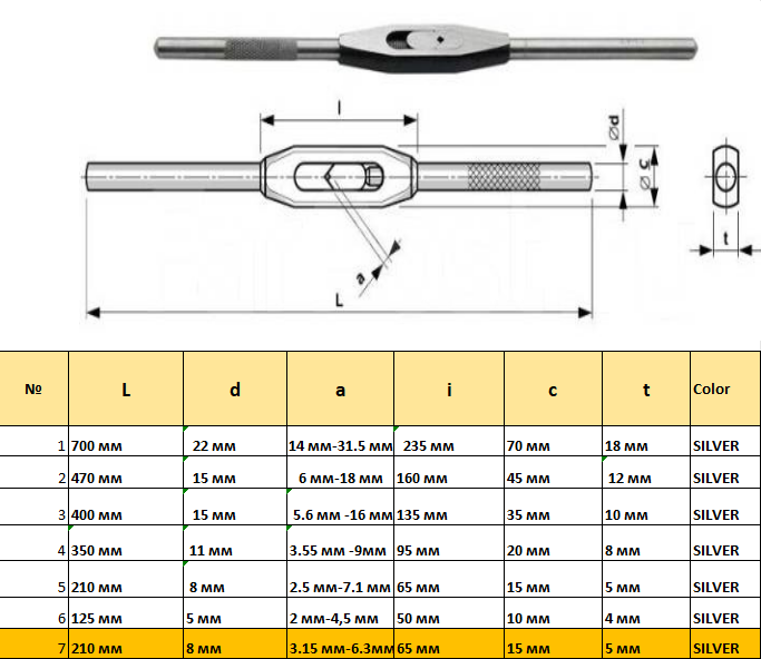 Вороток (Метчикодержатель) для метчиков (Квадрат 3.15-6.3 мм) 210 мм стальной корпус 500 руб. В корзину Описание Описание Общая длина 210 мм Диапазон зажима (Квадрат) 3.15-6.3 мм Кулачки закаленные Производство: КНР
